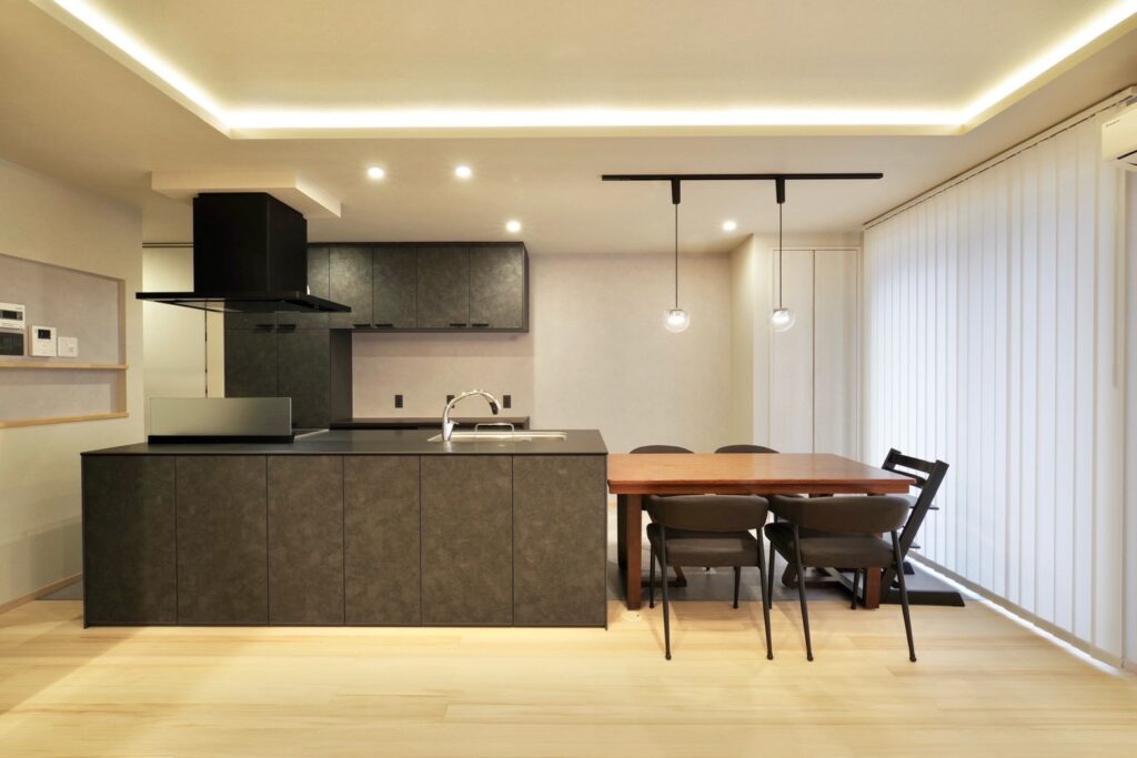 空間を無駄なく活かした設計を意識しました。 特に、ヌック下を引き出し収納にすることで、